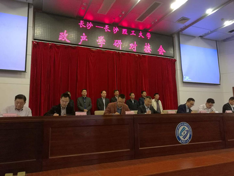 為進(jìn)一步加強長(cháng)沙與高校的科技合作交流,加快高校的科技成果在長(cháng)轉化,10月13日上午,“長(cháng)沙-長(cháng)沙理工大學(xué)政產(chǎn)學(xué)研對接活動(dòng)”在長(cháng)沙理工大學(xué)云塘校區舉行。圖為我公司與長(cháng)沙理工大學(xué)簽署對接協(xié)議。