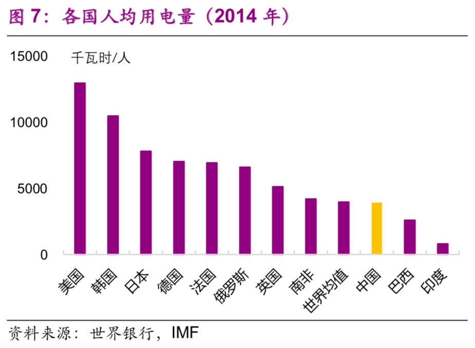 人均用電量則有所差異,部分西部資源輸出省份較高。排名前三的是寧夏(1.3萬(wàn)千瓦時(shí)/人)、青海(1.1萬(wàn)千瓦時(shí)/人)、內蒙古(1.0萬(wàn)千瓦時(shí)/人)(圖37),而世界均值為0.4萬(wàn)千瓦時(shí)/人。
